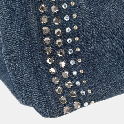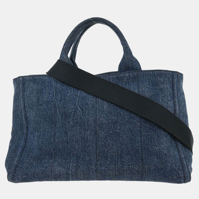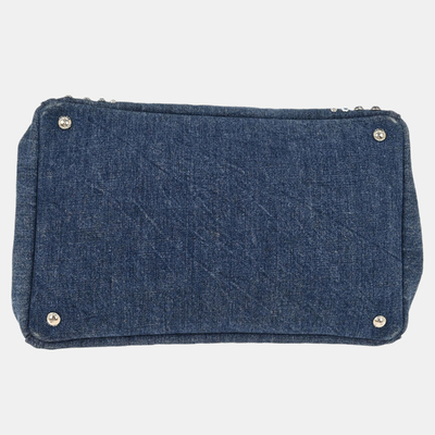 The Prada Canapa Tote in blue denim is a casual yet practical handbag featuring the signature Prada logo on the front. Its sturdy structure and spacious interior make it perfect for daily use. A relaxed option that still carries the distinct Prada touch.
