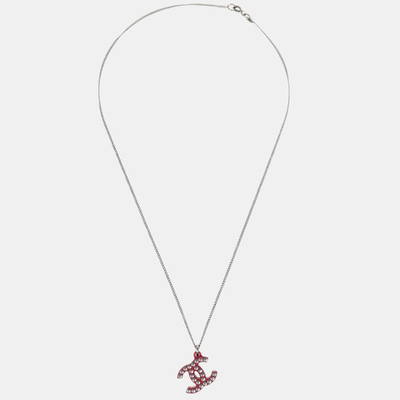 Chanel CC Chain Pendant Necklace Acrylic Silver Red 1229505 (lpn31056937)