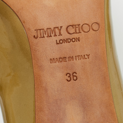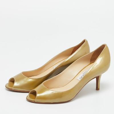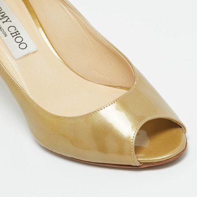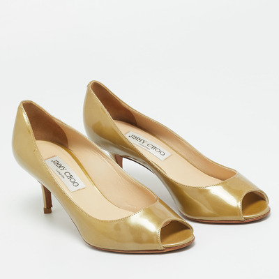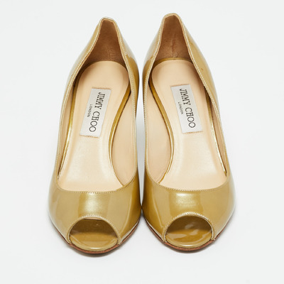 Step into sophistication with these Jimmy Choo Evelyn pumps, designed in metallic patent leather with a chic peep toe. The glossy finish and slender heels add instant glamour. Ideal for evening wear or special occasions that call for sparkle.