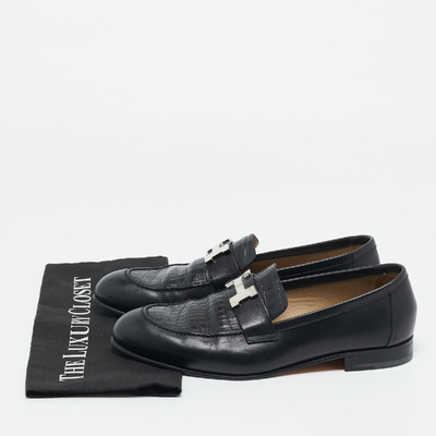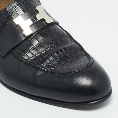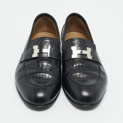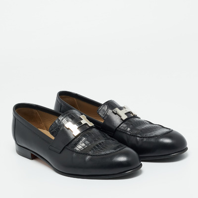 Hermes Black Crocodile Leather and Leather Loafers Size 41.5 1229427 (чёрный, lpn31056956)