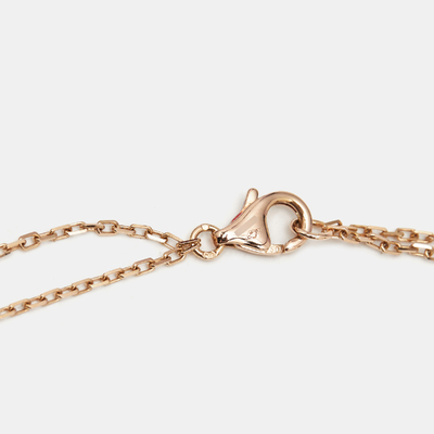 Synonymous with eternal devotion, Cartier’s Love necklace is reimagined in warm 18k rose gold, set with two brilliant cut diamonds that lend subtle brilliance to its smooth circular pendant. The engraved screw motifs echo the design of the iconic bracelet, symbolizing an unbreakable bond. Suspended from a fine chain, this piece exudes quiet sophistication — perfect for layering with minimalist chains or complementing evening ensembles with timeless allure.
