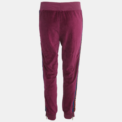 Just Cavalli Purple Leopard Side Stripe Velvet Joggers M 1228163 - 1