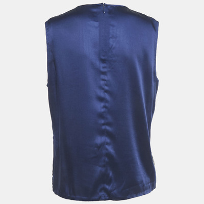 Diane Von Furstenberg Black/Blue Sequined Satin Sleeveless Blouse M 1228292 - 1