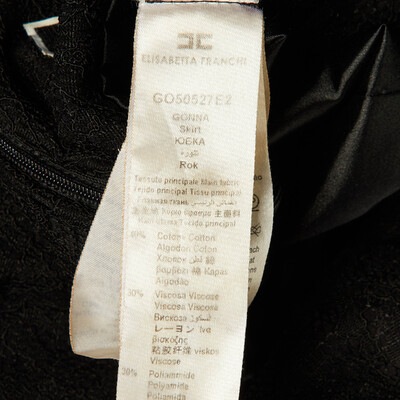 Sculpted in intricate lace, this Elisabetta Franchi pencil skirt is a study in refined sensuality. The fitted silhouette contours the body, while delicate lining ensures subtle coverage beneath the floral motifs. The midi length lends polished versatility, pairing seamlessly with silk blouses or cropped jackets. Elegant, feminine, and unmistakably Italian — it’s a statement of modern glamour.