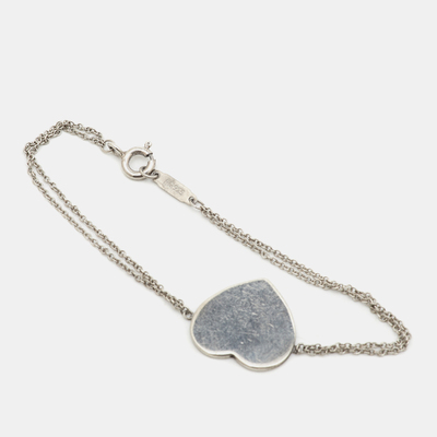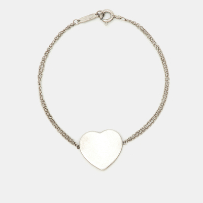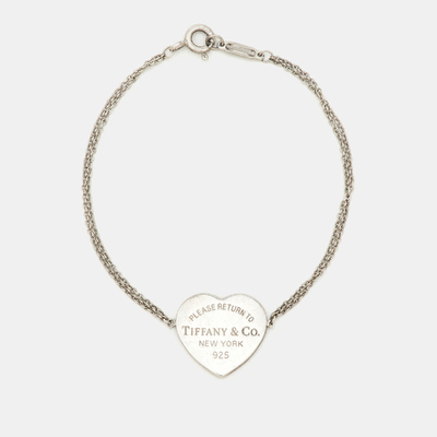 This double chain bracelet reimagines the classic Return to Tiffany heart tag in gleaming sterling silver, giving it a layered look that feels modern yet familiar. The engraved tag adds a whisper of nostalgia, while the twin chains bring texture and movement to the wrist.