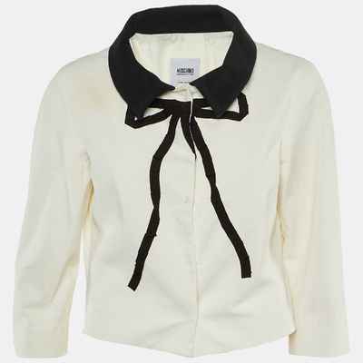 Moschino Cheap & Chic White /Black Cotton Bow Detail Jacket L 1228170 - 1