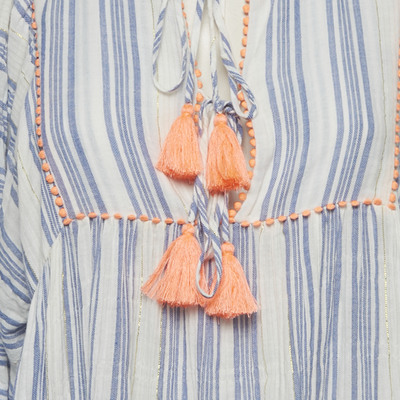 A breeze of a dress. Manoush’s striped cotton silhouette captures the spirit of summer with a carefree flow and dangling tassels. Loose fitting and light as air, it feels like something you’d wear to follow sunlight through cobblestoned streets.