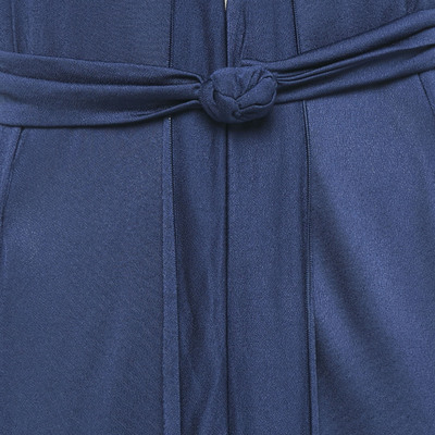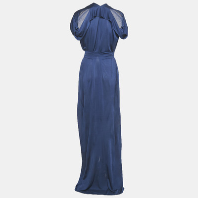 Roland Mouret’s mastery of structure and softness is evident in this navy crepe maxi dress. The belted waist cinches the figure, highlighting the designer’s architectural approach to draping. Clean lines, subtle pleats, and a graceful flow define its enduring appeal. Ideal for formal occasions or refined soirées, it pairs beautifully with pointed heels and sculptural jewelry for a poised, feminine statement.