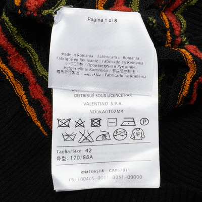 Lightweight yet cozy, this M Missoni cardigan is crafted from a wool and cotton blend. The black base is accented with a multicolor pointelle knit, giving it a textured look. Designed with long sleeves, a button front closure, and ribbed edges, it’s an easy layering piece for transitional weather.