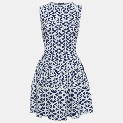 Alexander McQueen White/Blue Floral Pattern Stretch Knit Mini Dress XXS 1205015 - 1
