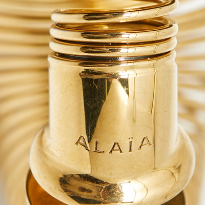 Alaia presents earrings in gold tone, designed with the Sping motif. The sculptural form highlights the maison’s focus on artistry and detail. A statement accessory, they balance modern edge with refined craftsmanship.