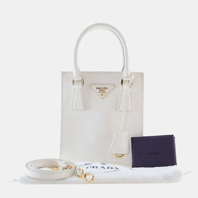 Prada White Mini Saffiano Lux Tote 1230333 (белый, lpn31060895)