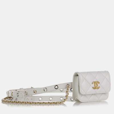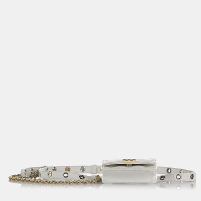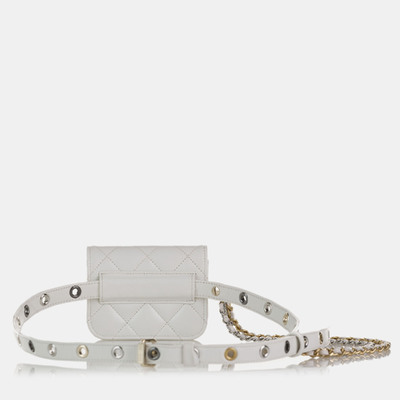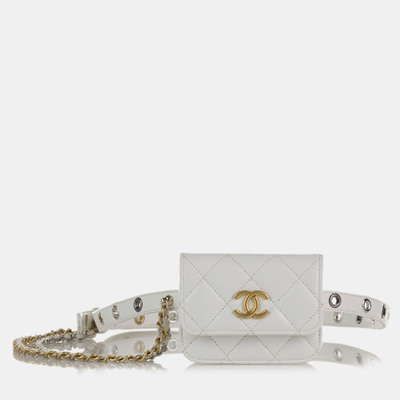 Chanel’s Punk Chain Leather Belt Bag in white fuses edgy attitude with refined craftsmanship, offering a bold, streetwise silhouette accentuated by statement chain details, making it perfect for hands free city styling or effortlessly elevating casual couture looks.