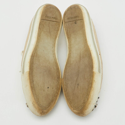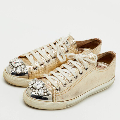 Miu Miu Gold Leather Crystal Embellished Cap Toe Low Top Sneakers Size 39 1230021 (lpn31060933)