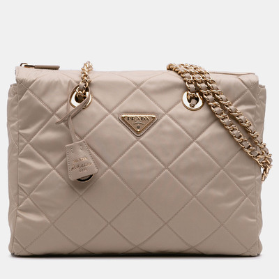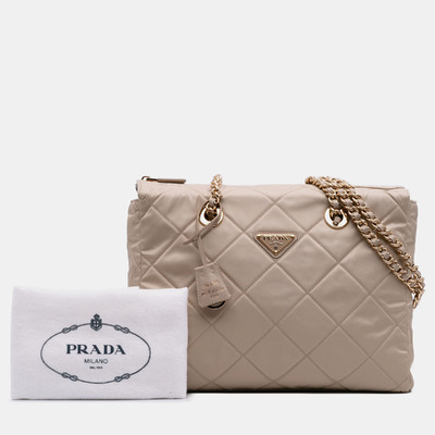 A sophisticated revival of a house classic, the Prada Brown Medium Re Nylon Re Edition 1995 Chaîne Shoulder Bag bridges archival elegance with modern sustainability. Crafted in the brand’s signature regenerated nylon, its sleek surface reflects light with an understated sheen, while the warm brown hue lends a sense of timeless refinement.