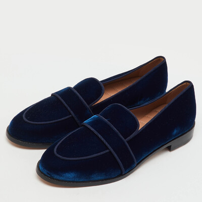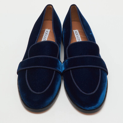 Aquazzura Navy Blue Velvet Martin Slip On Loafers Size 41 1230066 (lpn31060960)
