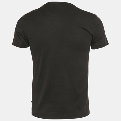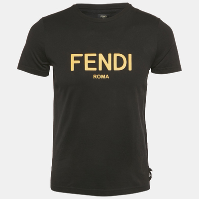 Elevate your casual wardrobe with this Fendi crewneck T shirt, crafted from black jersey and adorned with a leather logo applique. Its minimalist design contrasts beautifully with luxe detailing, making it perfect for pairing with tailored pants or denim.