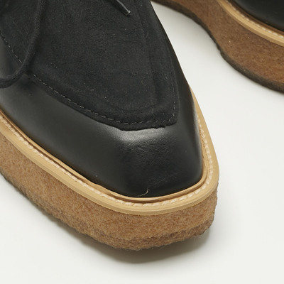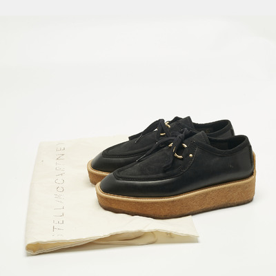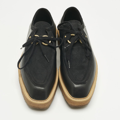 Ethically crafted, these Stella McCartney Brody Derbys combine black faux suede and faux leather in a sleek lace up design. The chunky sole adds a modern edge, making them a sustainable yet stylish choice for everyday wear.