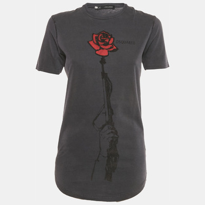 Dsquared2 Grey Textured Rose Print Jersey T-Shirt S 1229965 - 1