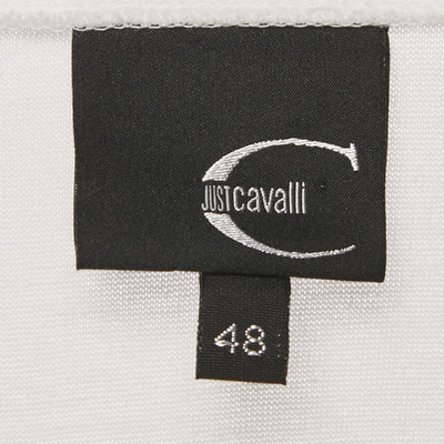 Just Cavalli captures easy Italian confidence with this printed white T shirt. The soft jersey construction and V neckline bring relaxed polish, while the signature motif at the front adds brand identity. Lightweight and versatile, it layers effortlessly under blazers or leather jackets for casual yet distinctive appeal.