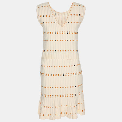 Sandro Cream Striped Rib Knit Top and Mini Skirt Set S 1229722 (lpn31061058)