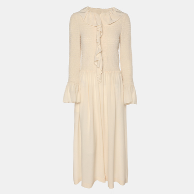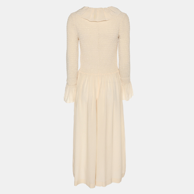 Tailored in smooth beige crepe, this Stella McCartney jumpsuit epitomizes understated elegance. The long sleeve silhouette and fluid drape create a refined yet modern look. Perfect for both professional and evening settings, it embodies effortless sophistication with sustainable craftsmanship.