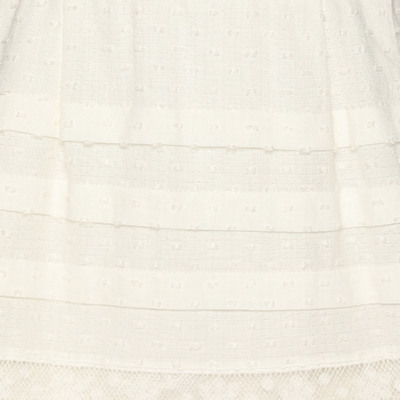 Zimmermann brings its signature craftsmanship to this lace paneled mini dress. The intricate detailing and soft white tone give it a charm that feels both fresh and timeless.