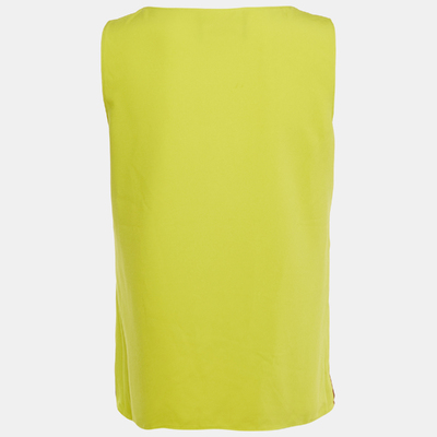 Boutique Moschino delivers playful energy with this crepe top in vivid volt green, punctuated by whimsical ice cream prints. The sleeveless silhouette and lightweight drape create a sense of ease, while the satin finish adds a subtle sheen. True to Moschino’s spirited DNA, it transforms everyday dressing with a dash of fun. Style it with white denim or an A line skirt for a chic, statement look.
