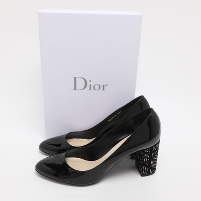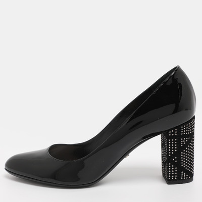 Dior Black Patent Leather Embellished Block Heel Pumps Size 39.5 1229608 (чёрный, lpn31061098)