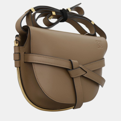 Loewe Small Gate Crossbody Bag With Gold Metal Edging Trim 1229259 (коричневый, lpn31061195)