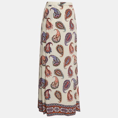Tory Burch Cream Paisley Print Silk Maxi Skirt L 1228650 (lpn31061246)