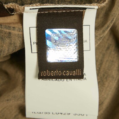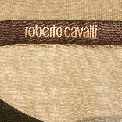This brown cotton T shirt features Roberto Cavalli’s signature snakeskin print. The lightweight fabric and relaxed cut make it easy to style for casual yet statement making outfits.