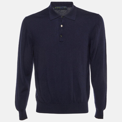 Etro Navy Blue Cashmere Long Sleeve Polo Sweater 2XL 1228638 (lpn31061254)