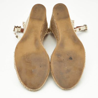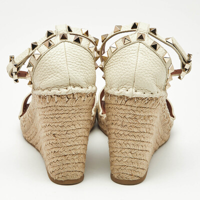 Valentino White/Cream Leather Rockstud Wedge Sandals Size 38 1229023 - 1