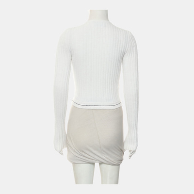 Minimalism meets quiet branding in this ribbed knit sweater—a foundational piece infused with discreet distinction. Its close, sculptural fit nods to timeless silhouettes, while a subtle logo detail anchors it in the world of refined heritage. Elevated essentials, reimagined.