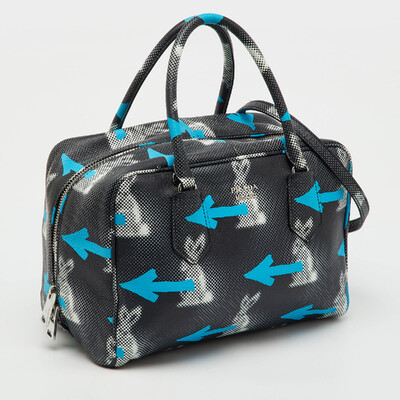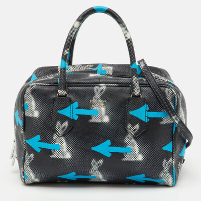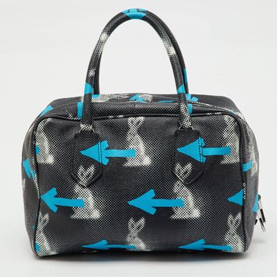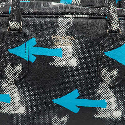Prada Black Vitello Daino Leather Rabbit Print Inside Satchel 1228372 - 1