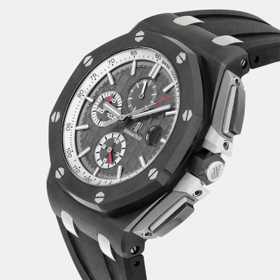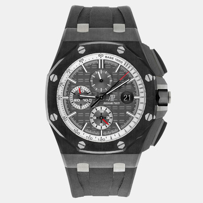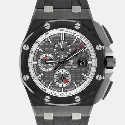 Crafted from durable black ceramic, this 44mm Audemars Piguet Royal Oak Offshore combines strength with precision. The automatic movement delivers reliable performance, while the bold black dial and rubber strap give it a confident, contemporary style. A fine choice for those who value both craftsmanship and endurance in a men’s luxury watch.