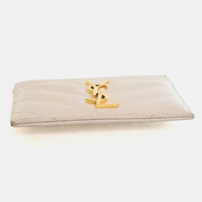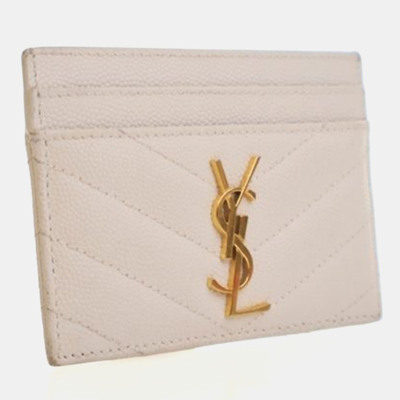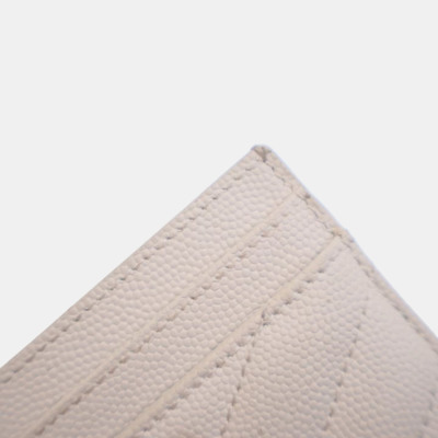 A sleek Saint Laurent card holder in white grained calfskin, designed to organize your essentials in style. Compact yet sophisticated, it slips easily into handbags or pockets. Perfect for daily use or refined evenings, it adds a subtle touch of luxury to any look. A timeless accessory for the modern fashion enthusiast.