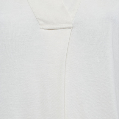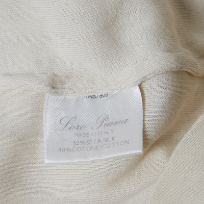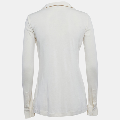 Loro Piana redefines wardrobe essentials with this cream jersey top. Crafted in Italy from ultra soft stretch fabric, it features a neat collar and concealed placket for a polished finish. Lightweight and breathable, it reflects the brand’s dedication to refined everyday luxury — ideal under blazers or paired with high waist trousers.