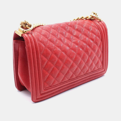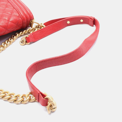 Chanel Boy Chanel CC Red Grained Calfskin Chain Shoulder Bag 1231430 (красный, lpn31064518)