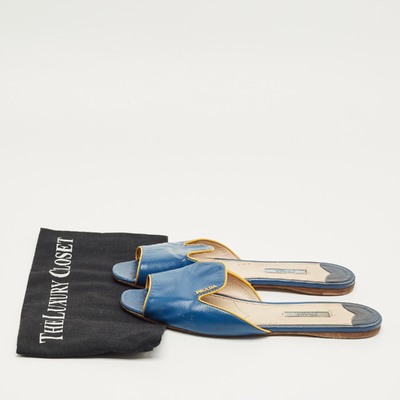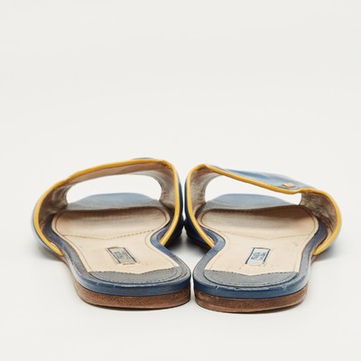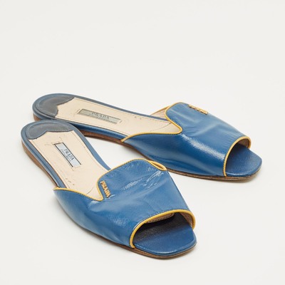Prada Blue Saffiano Patent Leather Flat Slide Sandals Size 40 1230949 - 1