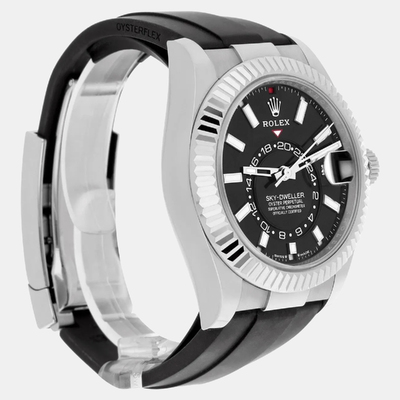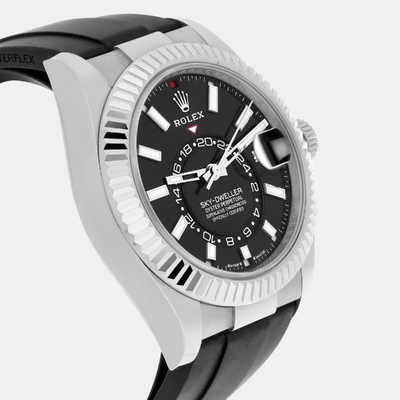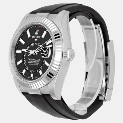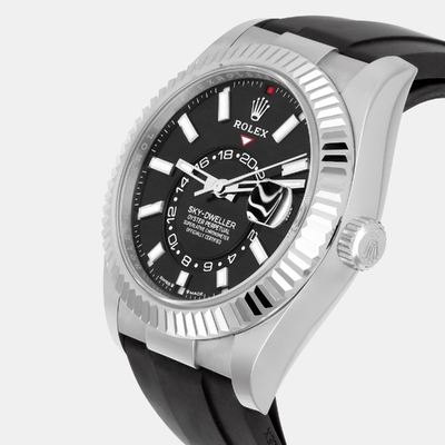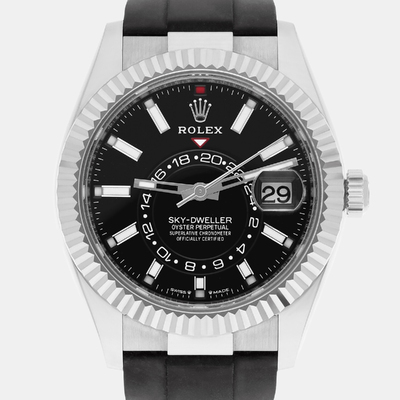 The Rolex Sky Dweller 336239 offers a dual time zone display and annual calendar function within a 42mm 18K white gold case. Designed for frequent travelers, it features an easy to read dial and an automatic self winding movement. A reliable companion for those who value both precision and functionality.