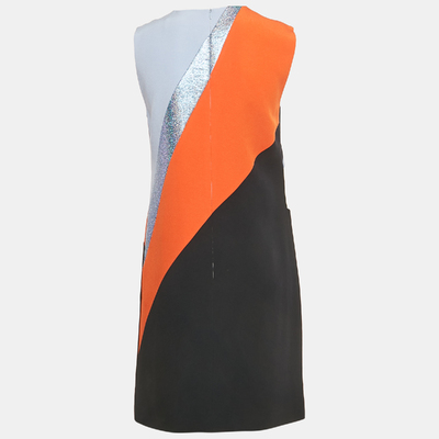 Victoria, Victoria Beckham Black/Blue Lurex Trim Crepe Shift Dress M 1230378 - 1