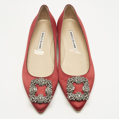 Manolo Blahnik Dark Red Satin Hangisi Ballet Flats Size 38 1230218 (красный, lpn31064623)