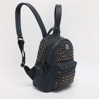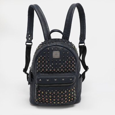MCM’s Stark backpack marries urban practicality with elevated design. Crafted from supple navy blue leather, it’s punctuated with diamond shaped studs that lend a distinctive edge. The structured shape offers multiple compartments for organization, while the padded straps ensure comfort. A contemporary icon for modern travel or refined street style.