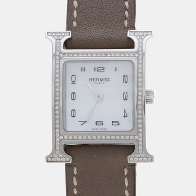 Hermes H Hour HH1.235 Quartz White Diamonds Stainless Steel Women's Wristwatch 26mm 1229790 - 1