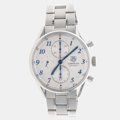 Rooted in motor racing heritage, the Tag Heuer Carrera Heritage Chronograph reinterprets classic sport design through a refined, contemporary lens. Its silver toned dial gleams with timeless sophistication, balanced by sharp chronograph registers that recall the golden age of precision timing. Clean lines, confident detailing, and a legacy of performance make this a piece for those who appreciate speed, style, and stories that endure.