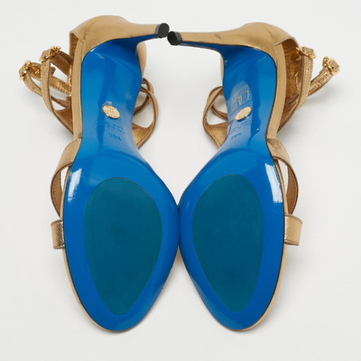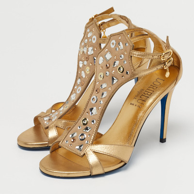 Loriblu Gold Leather Crystal Embellished Ankle Strap Sandals Size 38.5 1229827 (lpn31064788)