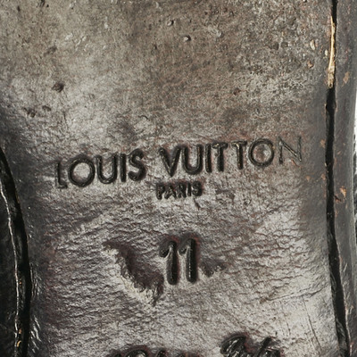These Louis Vuitton lace up derbies combine blue and black Damier denim with shimmering sequin accents for a striking contrast. Set on a sturdy sole, they blend streetwear energy with refined craftsmanship. A daring choice for fashion forward styling.