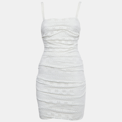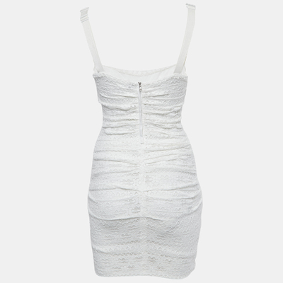 Dolce&Gabbana White Lace Ruched Sleeveless Mini Dress M 1230013 - 1